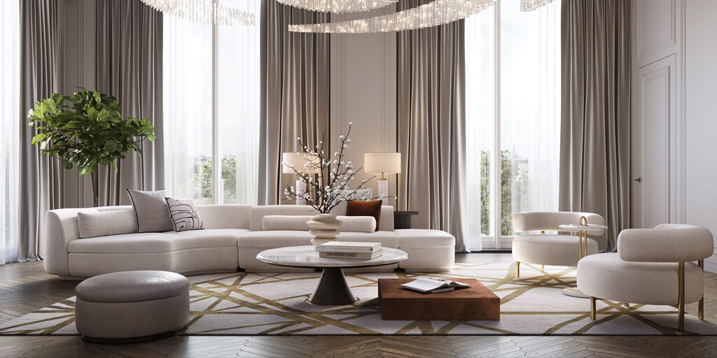 Отделка резиденций выполнена с применением древесины ценных пород, мрамора, декоративного камня и дизайнерских элементов. Светлые тона, акцентные поверхности, эстетичные формы создают стильную и современную атмосферу. Планировки разработаны таким образом, чтобы каждый жилой модуль был максимально функционален, удобен для персонализации и отвечал требованиям комфорта.